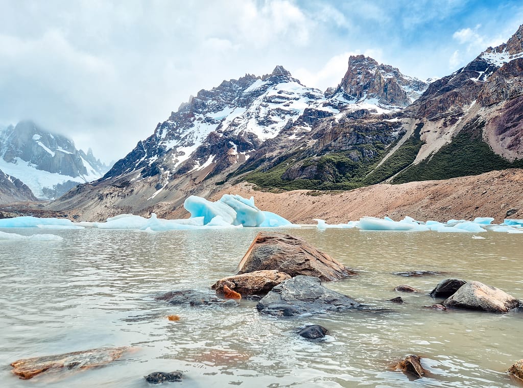 Viimeiselle päivälle halusin myös rennon vaelluksen, joten valitsin ”lyhyen”, 20 kilometrin Cerro Torre -vaelluksen. Reitti oli kaunis ja kulki metsien ja ketojen läpi, välillä jokea seuraillen. Perillä odotti pilvien peitossa oleva Cerro Torre ja laguuni, jossa uiskenteli muutama hassu jäälohkare. Itse matka oli hienompi kuin määränpää. Reitti oli aika ruuhkainen ja täynnä vaellussauvojen kanssa hitaasti kulkevia porukoita. Ylipäänsä Chalténin reitit olivat todella ruuhkaisia, mikä oli Suomen luonnonrauhaan tottuneena aika häiritsevää. Toki maisemat ovat upeita, mutta itse suosin ehkä vähemmän upeita paikkoja, joissa saa olla rauhassa. Aivojeni tunnetila heilahtelee välillä nopeasti äärimmäisyyksiin ja ehdin jo vakuuttua siitä, etten enää pidäkään vaeltamisesta. Tulimaassa pääsin onneksi äkkiä harhaluulosta eroon, siitä lisää seuraavassa postauksessa!