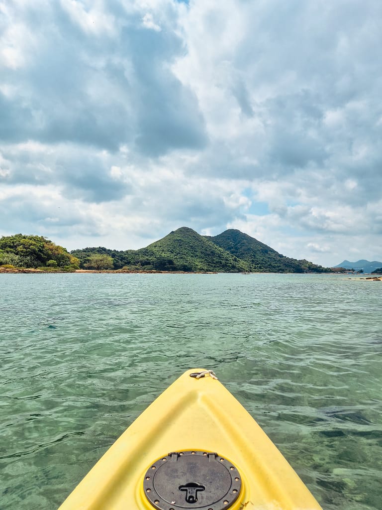 Tämän kerran luontokokemukseksi Hong Kongissa valitsin melontaretken Sai Kungissa. Edelliseltä kerralta minulle oli jäänyt muistiin maaginen telttaretki Ham Tin Wan -rannalle, jossa ensimmäistä kertaa elämässäni näin bioluminesoivaa planktonia. Sai Kung ei pettänyt tälläkään kertaa. Lähdimme liikkeelle Sha Ha -rannalta, jossa paikallinen mies vuokrasi jos jonkinlaista vesimenopeliä. Itse maksoin tolkuttoman summan Wild Hong Kong -firmalle, jota kautta minulla oli opas mukana retkellä. Saman olisi aivan hyvin voinut toteuttaa omakustanteisesti murto-osalla hinnasta. Korkeasta hinnasta huolimatta kokemus oli sen arvoinen. Kiersimme muutamassa tunnissa Sharp Islandin ja maisemat olivat upeat. Vesi välkehti turkoosina ja matkalla näimme kelluvan kalastajakylän sekä hienoja kalliomuodostelmia. Jos mela yhtään pysyy kädessä, tämä kannattaa käydä tekemässä!
