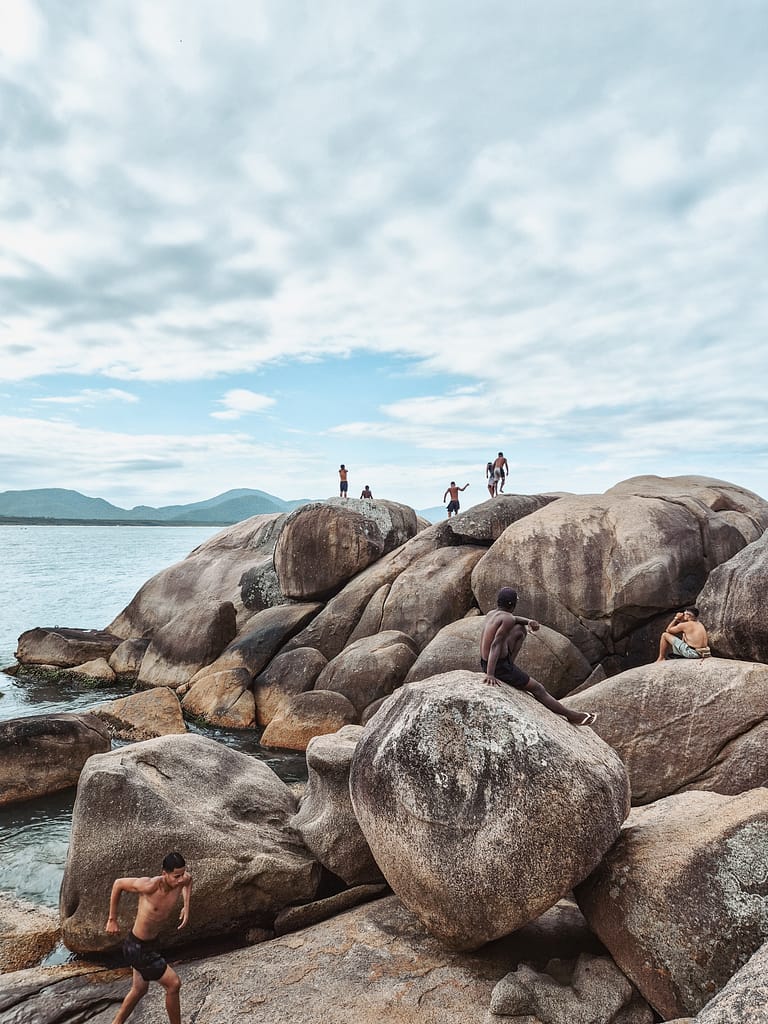 Aika arpaa heittäen päädyimme majailemaan Barra da Lagoan pieneen kalastajakylään Floripan itärannikolle. Barra da Lagoa ei tuntunut kovin eloisalta, vaikka ihmisiä olikin jonkin verran. En ihan saa kiinni, mistä se johtui. Ehkä siitä, että moni ravintola ja kauppa oli vielä kiinni ennen sesongin alkua. Kaikki elämä keskittyi rannalle, jolla oli lyhyt rivi ravintoloita. Kylä jäi johonkin hassuun väliin ettei ollut super rauhallinen muttei kovin eloisakaan (muuten kuin sunnuntaina kun paikalliset nuoret tulivat isoissa porukoissa viettämään kylään aikaa).