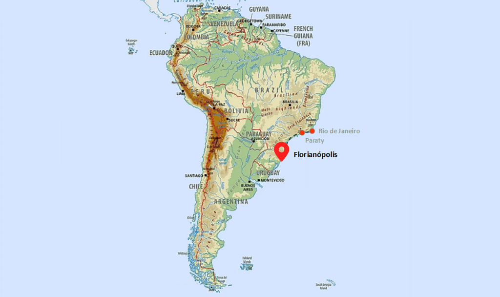 Florianopólis on kaupunki Santa Catarinan saarella Etelä-Brasiliassa. Puhekielessä koko saarta kutsutaan Florianopólisiksi, tai tuttavallisemmin Floripaksi. Floripa on valtava saari, sen pohjoiskärjestä eteläkärkeen kestää ajaa noin 1,5 tuntia. Saaren läpi uberilla ajaessa maisema vaihteli kaupungista vehreään metsään, turkoosina kareilevaan laguuniin ja hurmaaviin pikkukyliin ja tuli sellainen olo, että seuraavalla kerralla olisi kiva ottaa auto alle ja ajella ympäri saarta.