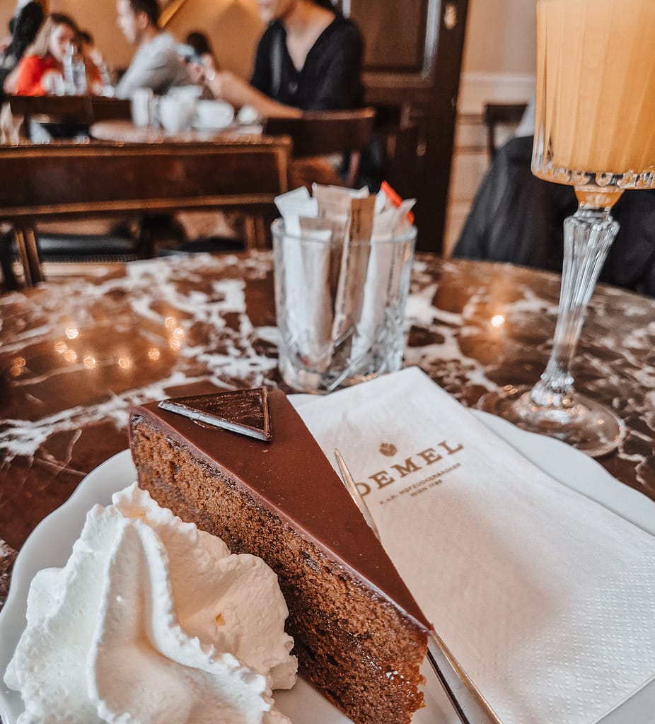 Sacher on mun suosikkikakku, joten sen maistelu syntykaupungissaan oli yksi tärkemmistä aktiviteeteista listalla. Café Sacher ja Café Demel kävi monta vuotta oikeutta siitä, kumpi saa kutsua omaa kakkuaan alkuperäiseksi. Demel hävisi. Kävin testaamassa molemmat ja omasta mielestä Demelissä oli parempi. Täydellisen makuinen suklaa, juuri oikea määrä aprikoosihilloa eikä yhtään kuiva. Cafe Sacherissa kakku oli ehkä hitusen kuiva, muuten oikein hyvä. Kävin testaamassa myös ketjukahvila Aidan kakun kun luin joltain sivulta, että se on paikallisten mielestä parempaa. No ei kyllä ollut! Ihan OK, mutta maistui kyllä ketjukahvilan tuotteelta.